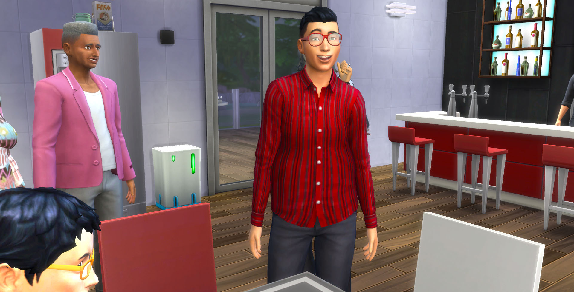 Sasha and Dexter got up from their seat and went inside. Emerson, Julian, and Jonathan were in the kitchen.